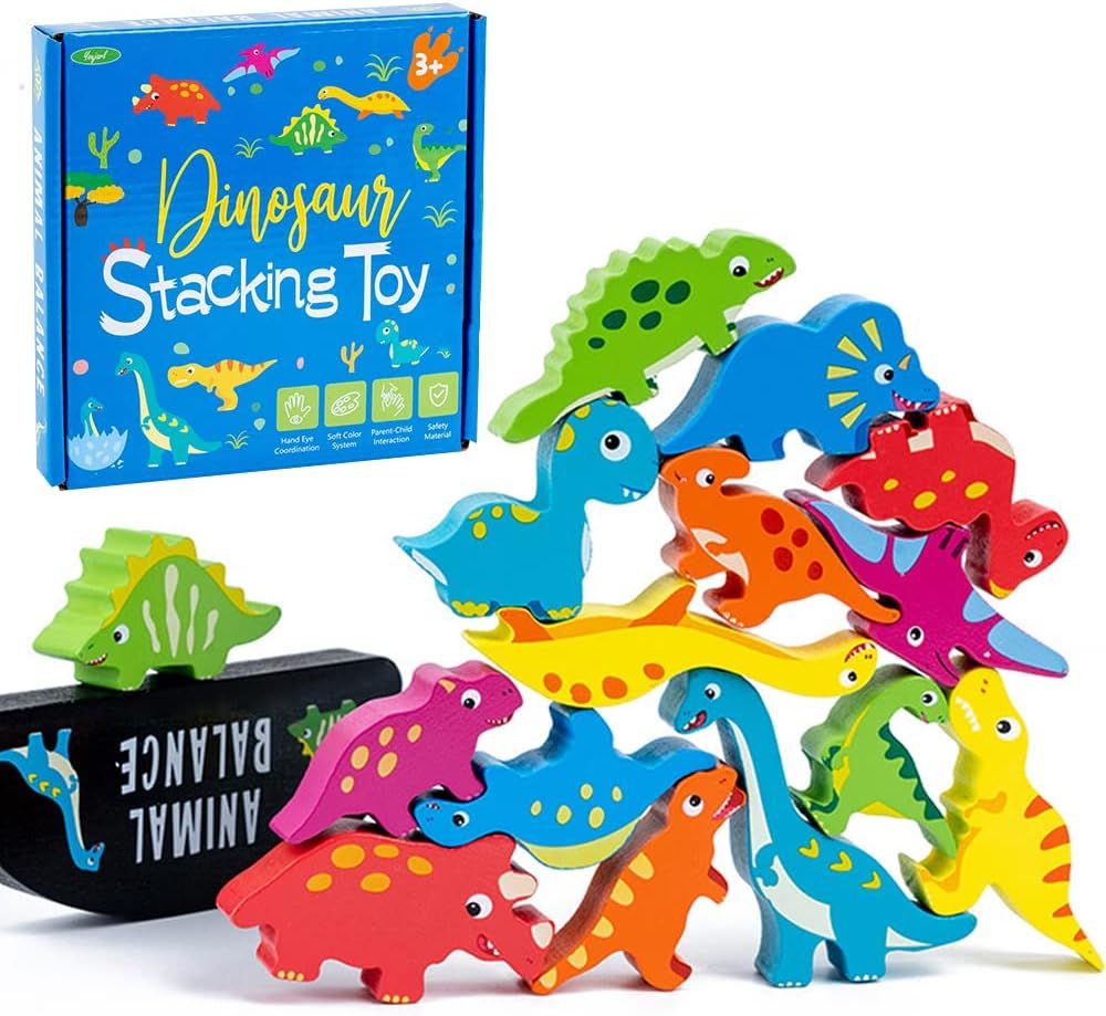 Jeux D'Empilage En Bois,Jeux Montessori Blocs Jouets D'Équilibrage Bois Lune,Empiler Bloc De Construction Animaux Dinosaur,Pour Enfants Garçons Filles 3 4 5 Ans Jouets Éducatifs