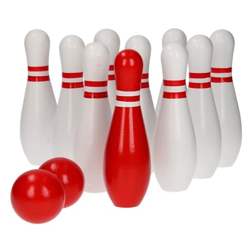 BS Toys Bowling En Bois - Quilles Pour Enfants - Pour Intérieur & Extérieur - A Partir De 4 Ans - Jeux De Société - Idéal Pour Les Anniversaires D'Enfants - Bois De Haute Qualité - Set Rouge Et Blanc