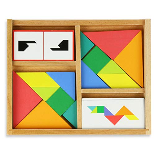 Vilac - Tangram Battle Multicolore - 2 jeux, +100 cartes et 4 niveaux de difficultés - Jeu de rapidité -De 1 à 2 joueurs - Jeu De Plateau en bois - A partir de 5 ans - 6061