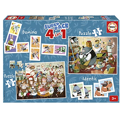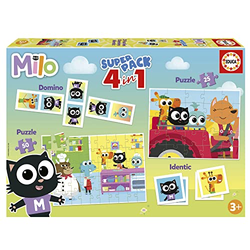 Educa - Superpack Milo | Jeux de société pour Enfants tels Que Domino, identique et 2 Puzzles de 25 et 50 pièces, Plusieurs possibilités de Jeu pour Jouer Seuls ou accompagnés, de 3 Ans (19684)