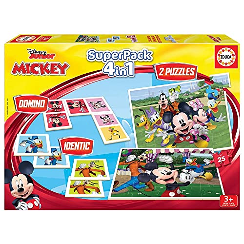 Educa - Superpack Mickey & Friends, Pack de Jeux de Table Infatiles, Domino, Identic et 2 Puzzles Mickey et Ses Amis à partir de 3 Ans (19099)