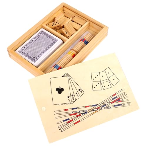 MGM GAMES - 3 Jeux en 1 Domino, Mikado et 1 Jeu de Carte - Jeu de Société - 140790-2 à 6 Joueurs - Famille - Jouet Enfant - Cadeau - À partir de 3 Ans