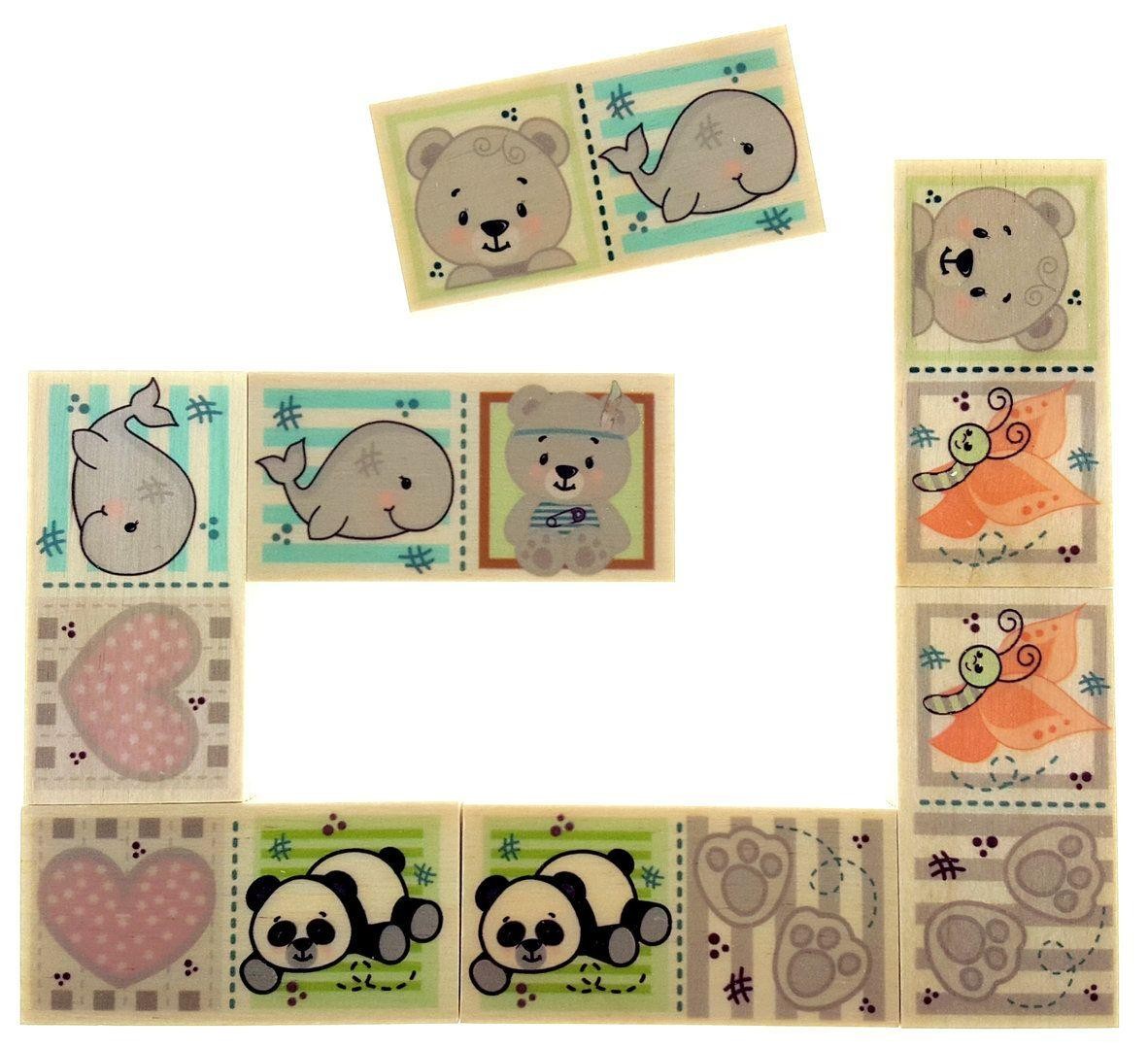 Jouet En Bois Jeu De Domino Ours BxLxH 60x10x30mm NEU Domino Memo Jeux D'Animaux