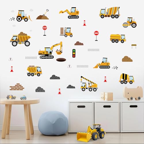 SHUCHING Stickers Muraux Véhicules de Construction, Stickers Mural Camions Tracteur Excavateur Grue, Decoration Chambre Salon Salle de Jeux Enfants Garçon