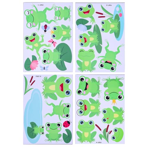 Abaodam Autocollants Muraux Grenouilles Amovibles En Pvc Pour Chambre D'garçon Et Filles Décorative, Autocollants De Dessin Animé Colorés Vert, Lot De 4 Feuilles Diy Salle De Jeux Garçon Et Filles