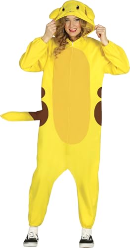 FIESTAS GUIRCA | Costume de Chinchilla Électrique (38-40/M) - Cagoule, Queue et Combinaison - Costumes de Jeux Vidéo ou Animaux pour Fêtes et Événements - Idéal pour Adultes - Jaune et Marron