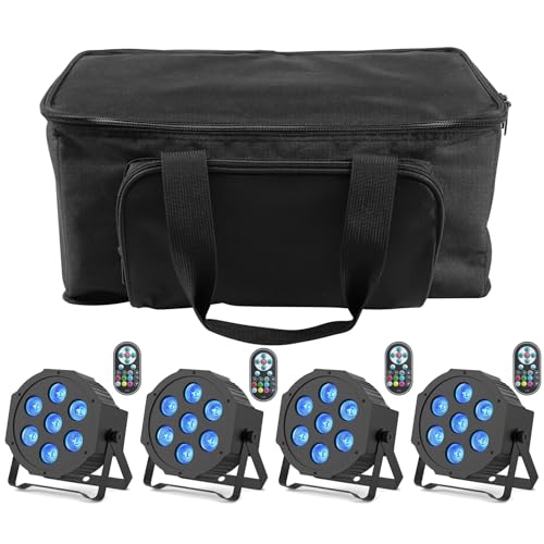 U`King 4 PCS RGB Lumiere de Scene avec Sac, 72W Par 36 LED Projecteur Jeux de Lumiere Eclairage Scene avec Télécommande et 7 Modes, Lumière Disco pour Fête DJ Bars Groupe Concerts Halloween Noël