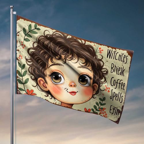 Drapeaux pour gars Whimsical Witch's Brew : un drapeau magique de sortilège de café, accessoires de bar, décoration de salle de jeux (60 x 90 cm)