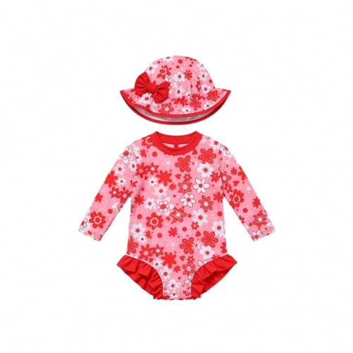 Maillot Bain Enfant Fille, Maillot De Bain Une PièCe à Manches Longues Et Boutons-Pression avec Chapeau De Soleil Assorti pour BéBé Fille Protection Solaire pour La Piscine La Plage Et Les Jeux d'eau