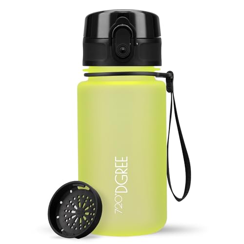 720°DGREE Gourde Enfant 350ml “uberBottle“ +Tamis à Fruit, softTouch - Sans BPA, Anti-fuite - Bouteille d'Eau, Water Bottle idéale pour Jardin d'enfants, Aire de jeux, Fille & Garçon à partir de 3 ans