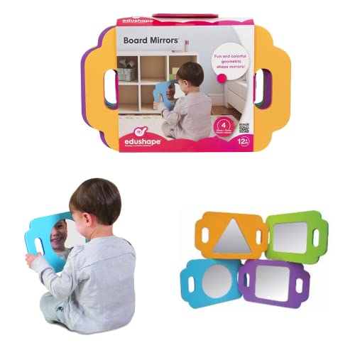 BSM Edushape – Board Mirrors – Lot de 4 Miroirs Géométriques en Mousse avec Poignées – Triangle, Carré, Rectangle, Cercle – Jouet Éveil Conscience de Soi et Reconnaissance des Formes Dès 12 Mois