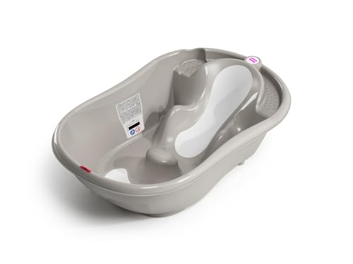 OKBABY Onda Evolution - Baignoire pour le Bain des Nouveau-nés 0-12 Mois, Assise en Gomme Antidérapante - Gris