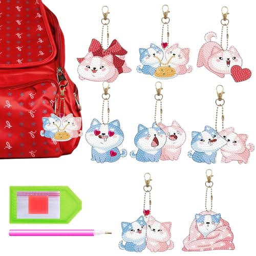 Ensemble de porte-clés d'art diamant - Thème chiot - Peinture sur pierres précieuses - Bricolage pour - Breloques acryliques colorées double face - Collection de jeux de loisirs créatifs