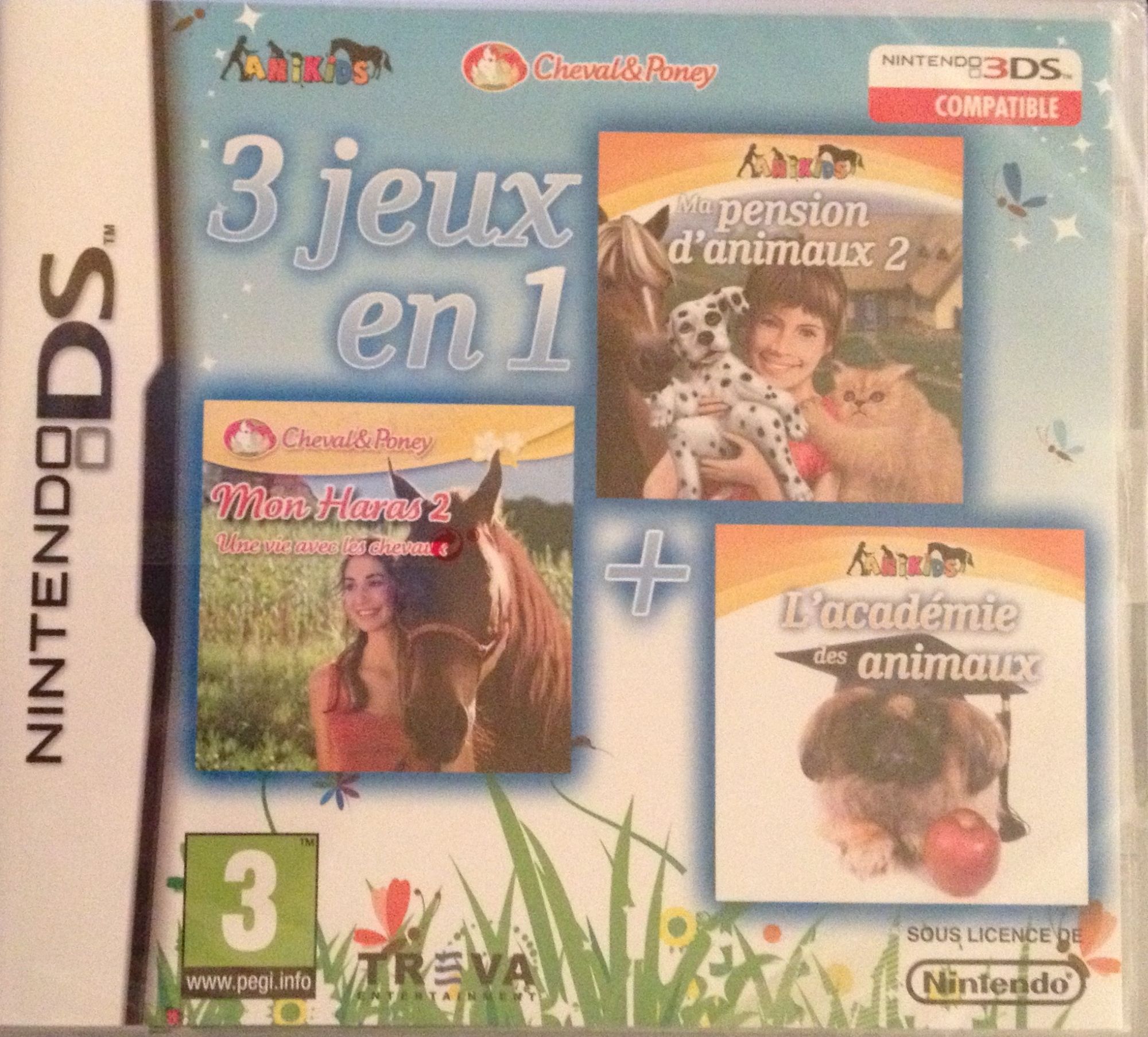 3 Jeux En 1 : Mon Haras 2 / Ma Pension D'animaux 2 / L'academie Des Animaux Nintendo Ds