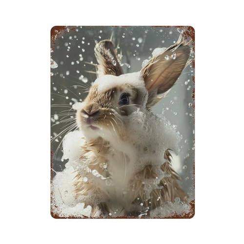 sinyumoney Plaque en métal vintage « L'heure du bain du lapin », affiche rétro en métal pour atelier, salle de jeux, bar, cuisine, décoration 30 x 20 cm