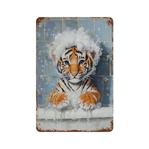 sinyumoney Plaque décorative en aluminium « L'heure du bain des petits tigres » pour atelier, salle de jeux, bar, cuisine, 30 x 20 cm