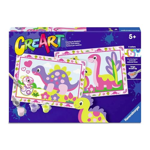 Ravensburger - Creart Junior - 2 x dinosaures tendres | Peinture par numéros | Kit de peinture | Dimensions 22 x 32 cm | Jeux Enfants 5 Ans | Idées Cadeau | Cadeau Enfant 5 Ans