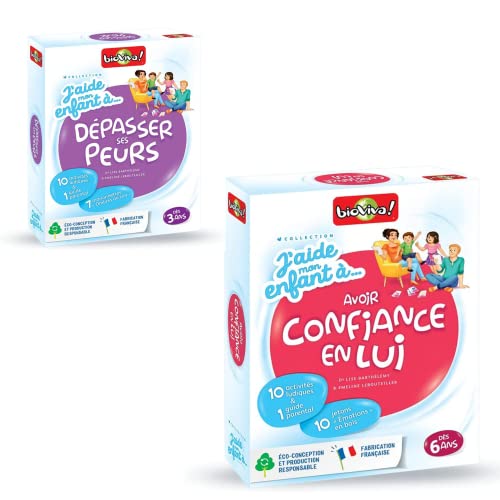 Bioviva - Lot de 2 Jeux de la Collection J'aide Mon Enfant à…. - Dépasser Ses peurs - Avoir Confiance en Lui - Jeu de société ludique dès 6 Ans - Jeux Bienveillants pour Petits et Grands - 200592