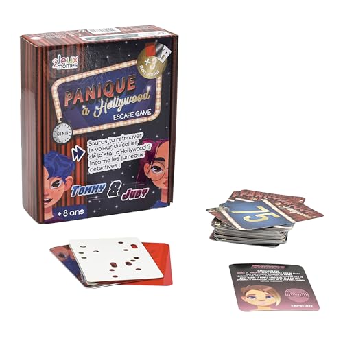 Jeux 2 MOMES, EA0012, Jeu Escape Game Enfant Panique à Hollywood - Aventure immersive pour Jumeaux détectives, 104 Cartes illustrées, idéal dès 8 Ans, Multicolore, Taille Unique