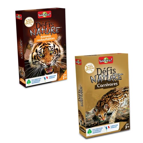Bioviva -Défis Nature -Lot de 2 Jeux Défis Nature Les Carnivores et Les Animaux Redoutables - Jeux de société ludique pour Enfant-Jeux Bienveillants pour Petits et Grands-Dès 7 Ans-Fabriqué en France