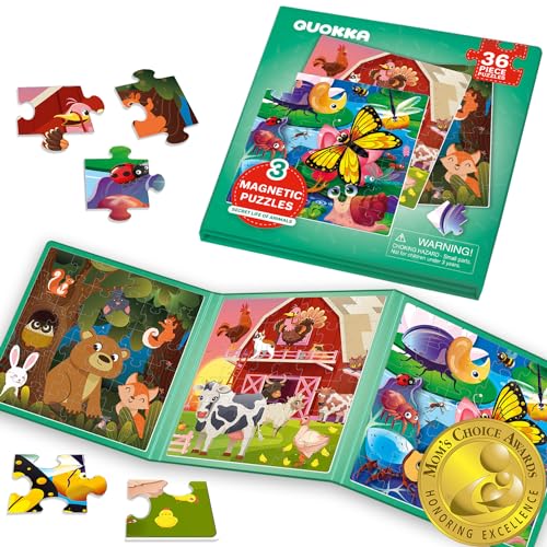 QUOKKA Jeu Magnétique Enfant 2 3 4 Ans - 36 Pièces Puzzle Magnétique Enfant - Jeux Voyage pour 5 6 Ans - Jouets pour l'Avion avec Ferme Animaux Insectes - Cadeau Educatif Garçons et Filles