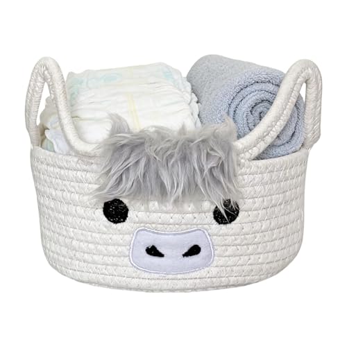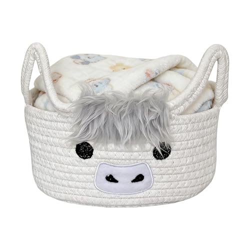 Panier de vache des Highlands – Organisateur d'animaux mignons, poubelle en coton tissé | Conteneur ludique de Style ferme pour chambre d'enfant, pour chambre à coucher, salon, salle de jeux, jouet po