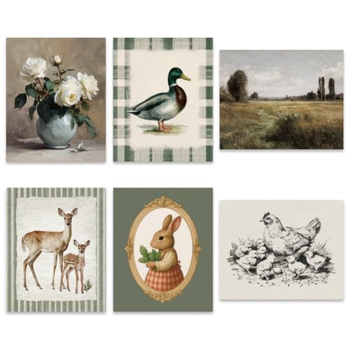 GOMAKERER 6pcs D'Art Mural Vintage pour Chambre D'Enfant Décoration Murale pour Chambre de Bébé Animaux de Dessin Animé Art Mural Peinture de Ferme Œuvre D'Art pour Chambre à Coucher Salle de Jeux