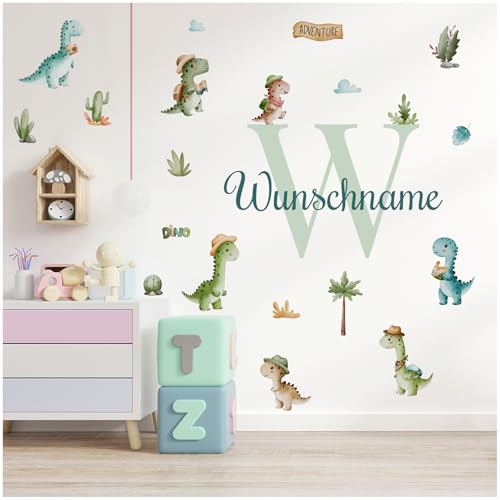Stickers muraux personnalisés Stickers aquarelle animaux avec nom Sticker muraux pour chambre d'enfant chambre de bébé salle de jeux fille Y037 (Avec votre nom, No 9 Dinos)