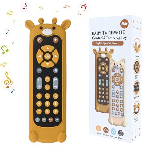 JoyJoyful Jouet Telecommande TV Enfant Bebe 1 an, 3 Langues Jeux Educatif Cadeau Fille 1 an pour Français/Espagnol/Anglais, Jouets Musicaux, Jouets d'apprentissage Précoce Einstein (Girafe Noire)