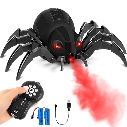 MOMOSTAR 2.4GHZ Araignée Télécommandée Jouet Enfant 6-12 Ans Garcon Fille, Fonction Spray, Yeux Lumineux Et Plusieurs Modes Musicaux Anniversaire Cadeau Enfant 6-12 Ans Garcon Fille Jeux