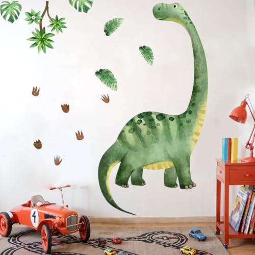Stickers Muraux Grand Dinosaure Geant Autocollant, 3PCS Aquarelle Dino Palmier Autocollants Muraux Mural Tropical Animaux Décoration Murale DIY pour Chambre Bébé Jeux Enfants Pépinière Salon
