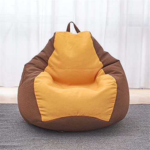 Treer Housse de Pouf Poire Coton et Lin pour Adulte et Enfants, sans Remplissage, Lavable Pouf Géant de Salon Sofa Housse de Fauteuil Poire pour Les Jeux ou La détente (90x100cm,Marron + Jaune)