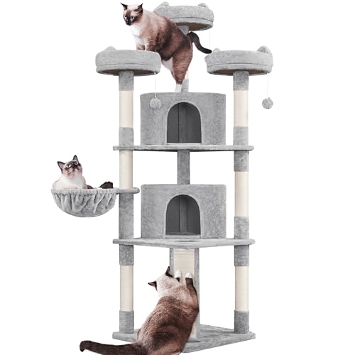 Yaheetech Arbre a Chat Géant 175 cm avec Griffoir Arbre à Chat Design Arbre à Gratter Tour de Jeux avec 2 Grottes Spacieux 3 Plateformes Planche à Gratter Gris Clair
