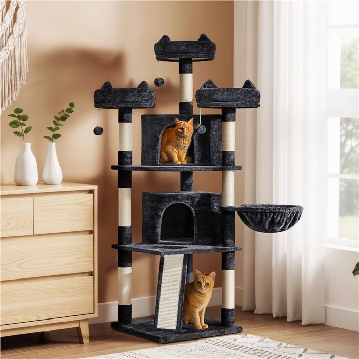 Yaheetech Arbre a Chat Geant 175 cm avec Griffoir Arbre à Chat Design Arbre à Gratter Tour de Jeux avec 2 Grottes Spacieux 3 Plateformes Planche à Gratter Noir