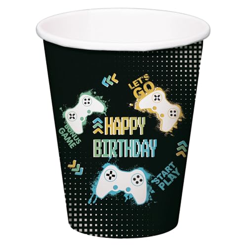 Folat 24965 Vidéo Fournitures Gobelets-Level Up-250 ml-8 pièces-Décoration Vaisselle de Fête d'anniversaire Amateurs de Jeux, Noir
