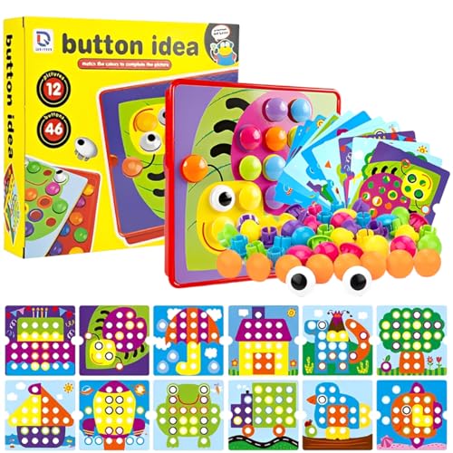 WDJLNZB Mosaique Enfant, 12 Cartes et 46 Boutons Jeux de Mosaïque Jeux Educatif Enfant Jeux Montessori 2 3 4 Ans Jeux Enfants Colorés Mosaique Loisir Creatif pour d'anniversaire Noël