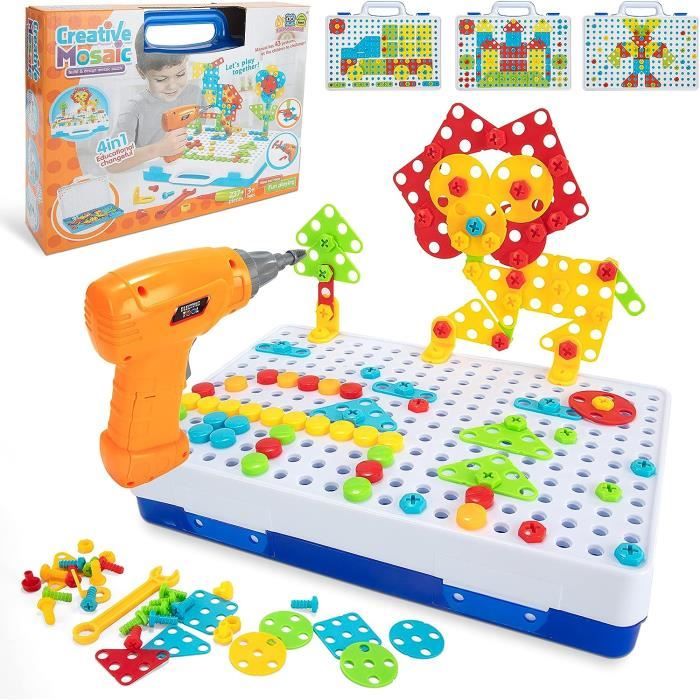 Jouet Enfant Mosaique Puzzle 3D Etabli Enfant Bricolage Jeux de Construction Educatif Visseuse Enfant avec Perceuse Électronique
