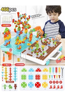 Jeux Construction Jouet-Mosaïque Puzzle 3D Avec Visseuse Electrique-Educatifs et Scientifiques Pour Enfant 466 Pièces