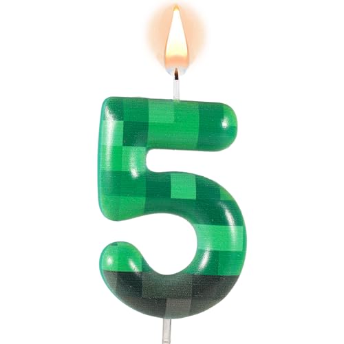 Bougies d'Anniversaire à Thème TNT pour Gâteau, Bougies d'Anniversaire à Chiffres Verts Pixels Décorations de Gâteaux TNT pour Anniversaire Baby Shower Jeux Vidéo Fournitures de Fête (Numéro 5)