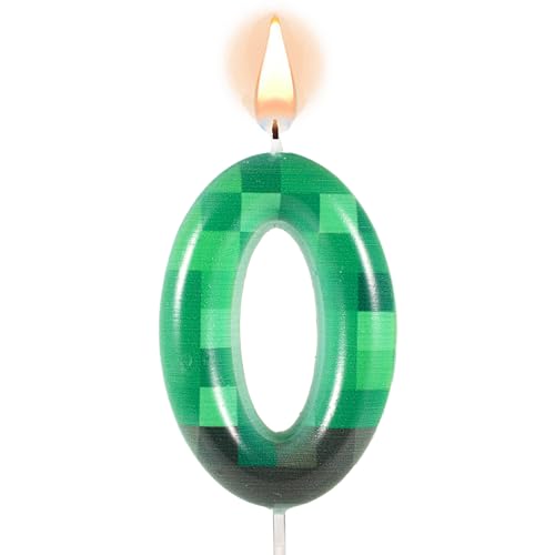 Bougies d'Anniversaire à Thème TNT pour Gâteau, Bougies d'Anniversaire à Chiffres Verts Pixels Décorations de Gâteaux TNT pour Anniversaire Baby Shower Jeux Vidéo Fournitures de Fête (Numéro 0)