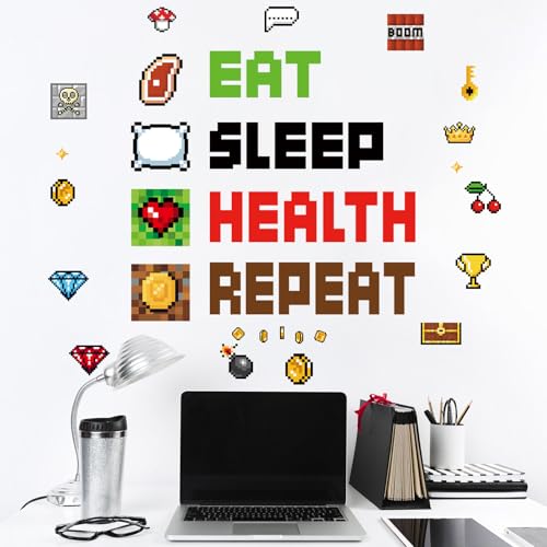 9pcs Autocollants Muraux Thème Pixels, Autocollants Muraux Amovibles à Motif Jeux Vidéo pour Garçons et Filles Décoration pour Maison Bureau Fêtes Chambre Coucher Salle Jeux