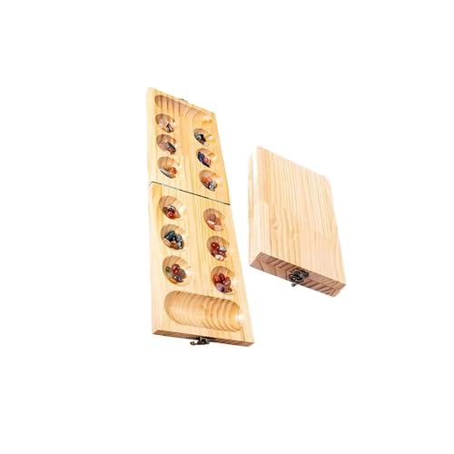 LIXSAZSE Jeu de Mancala Pliable et Portable pour Enfants et Adultes, avec Plateau en Bois résistant et 48 Pierres. Idéal pour Les fêtes et Les Jeux de stratégie Classiques.