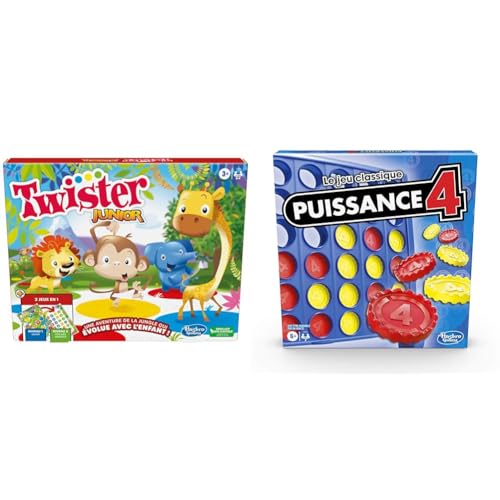 Jeu Twister Junior, Tapis réversible Aventure de la Jungle, 2 Jeux en 1, Jeu de Groupe d'intérieur & Puissance 4, Le Jeu de société et de Plateau pour Enfants, stratégie pour 2 Joueurs