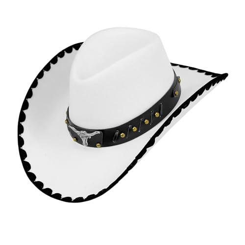 W WIDMANN MILANO Party Fashion - Chapeau de cowboy en feutre avec emblème Longhorn, blanc, chapeau western pour adultes, pour carnaval, enterrement de vie de garçon/jeune fille et soirée à thème