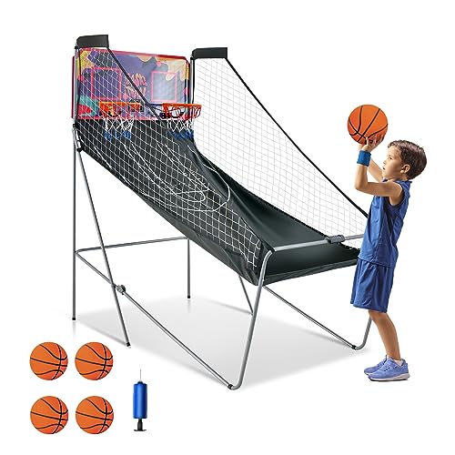 COSTWAY Panier de Basketball Pliable à Double Tir 4 Balles Pompe de Gonflage, Jeu de Basketball Arcade pour 1 à 4 Joueurs avec Système de Pointage, 8 Modes de Jeux pour Enfants Adultes (Vert)