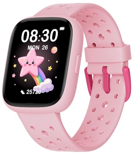 TICTIKY Montre Connectée Enfant Non APP Connectée, 1,83" Smartwatch avec Podomètre, IP68 Étanche, Cardiofrequencemètre, Moniteur de Sommeil, Jeux de Puzzle pour Filles Les Enfants de 5 Ans et Plus