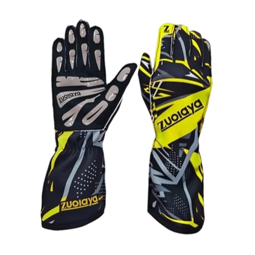 Sharplace Gants de Karting Longs pour Adultes, Gants de Jeu Professionnels antidérapants et hautement élastiques pour Jeux de Simulation de Conduite, Jaune