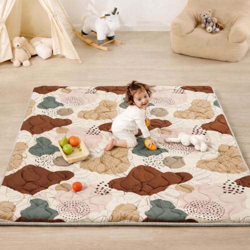 Lambluefly Tapis d'eveil Bebe, épaissi Tapis de Jeux Bebe 200x180cm, Antidérapant, Lavable en Machine, Pliable Tapis d'éveil et de Jeux, Tapis Sol Bebe de Jeu pour Parc, Conception de Style Bohème