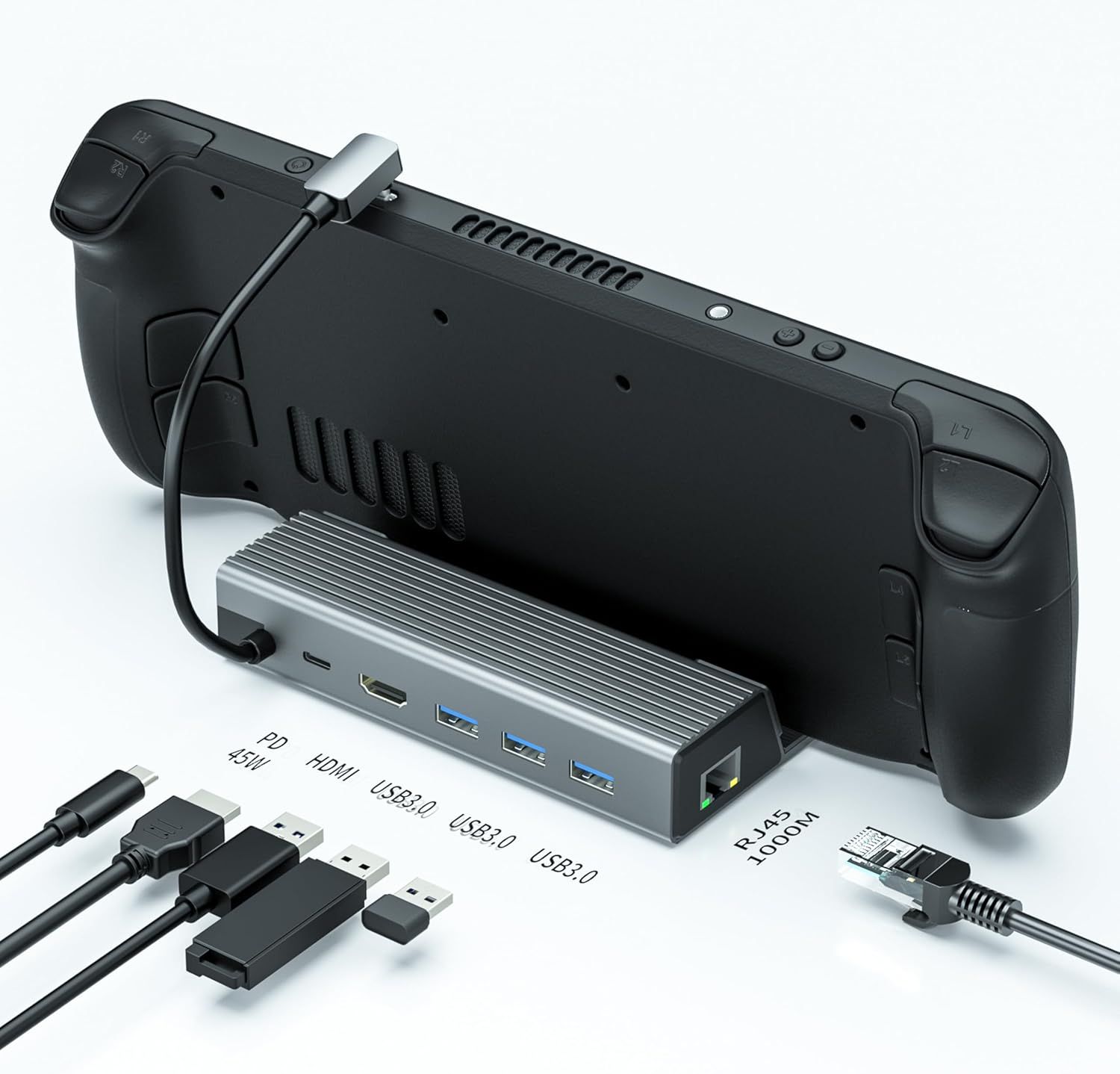 Steam Deck Dock - Station d'accueil 6 en 1 avec HDMI, USB-C, USB 3.0, Gigabit Ethernet - Accessoires compatibles pour Valve Steam Deck - Station d'accueil portable pour jeux et streaming