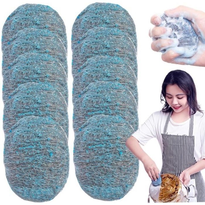 Tampon Jex avec Savon en Laine dacier 12Pcs Poussions De Laine en Acier Easy Nettoyage éPoudeur RéUtilisable Absorbant Absorbant